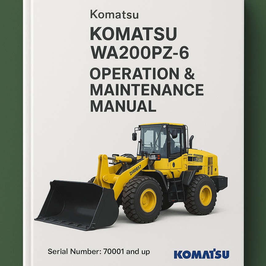 Este es el Manual COMPLETO de operación y mantenimiento para la cargadora de ruedas Komatsu WA200PZ-6. NÚMERO DE SERIE DEL MODELO DE LA MÁQUINA WA200PZ-6 - 70001 y superiores Este manual describe los procedimientos de operación, manipulación, lubricación, mantenimiento, verificación...- Precio habitual