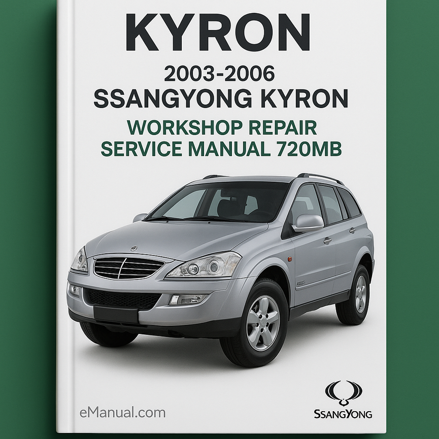 🏷️ Basic Information Identification Make: SsangYong Model: Kyron Model Years Covered: 2003, 2004, 2005, 2006, 2007 Vehicle Type: SUV (Sport Utility Vehicle) Codes Manual Product Name: 2003-2007 SsangYong Kyron Workshop Repair Service Manual-920MB 👋 Introduction Market Position Target Audience: DIY...- 常规价格